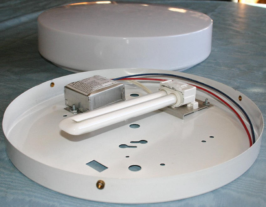 impact acrylic cover, compact fluorescent bulb. 11” x 3”