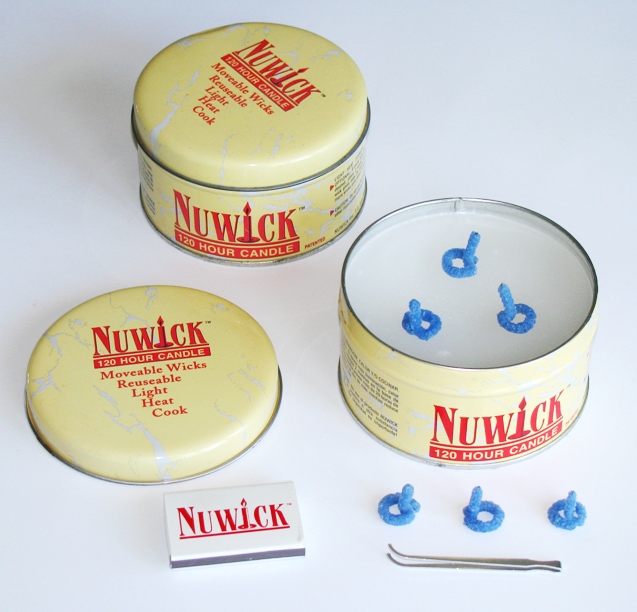 wicks to be used simultaneously for extra light and heat. Keep some in car