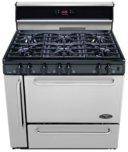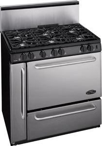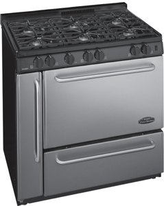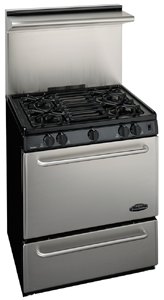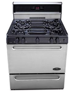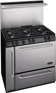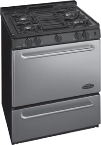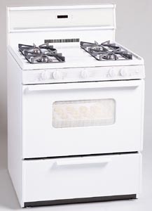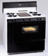 warranty on top burners, 9100 BTU, insulated ovens save gas, lift off oven door