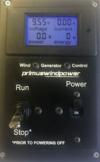 charging amps and watts. Also has Run/Stop turbine switch, On/Off circuit