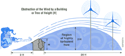 Turbulence puts more wear on the turbine. Try to mount turbine 20' above trees