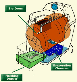 bacteria, peat moss and evaporation to rapidly reduce and recycle wastes.