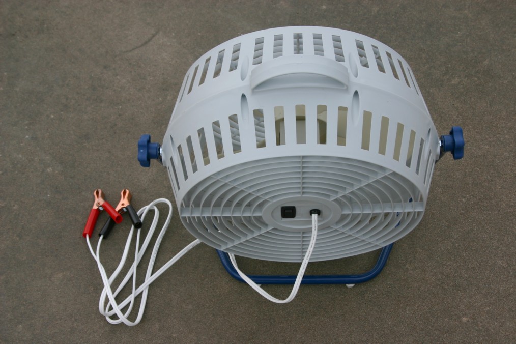 included adapter for direct connect to battery terminals. 3000 cfm on high. 1 year