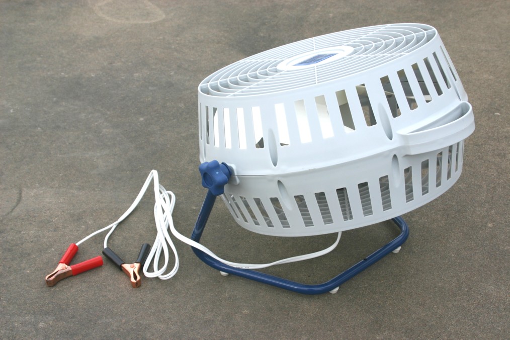 fan to any angle. 9 foot cord plugs into cigarette lighter outlet or use