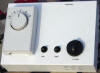 Wall mounted control box contains a thermostat, a two speed (HI/LOW) fan