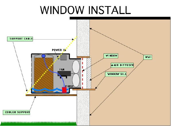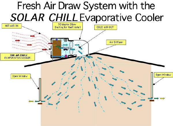 Evaporative Coolers, the diagram shows how the cooling system works without