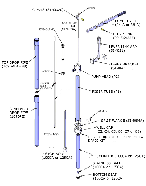 drop pipe kit with sucker rod and guide. This is only used with the larger