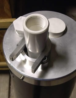 FNPT with threaded PVC plugs, one for wiring, one for shock access or Well