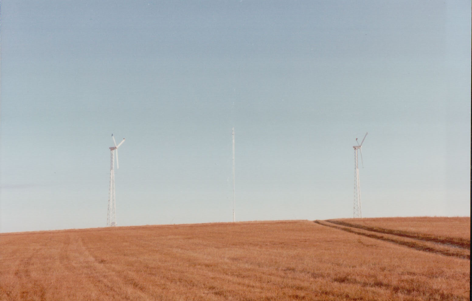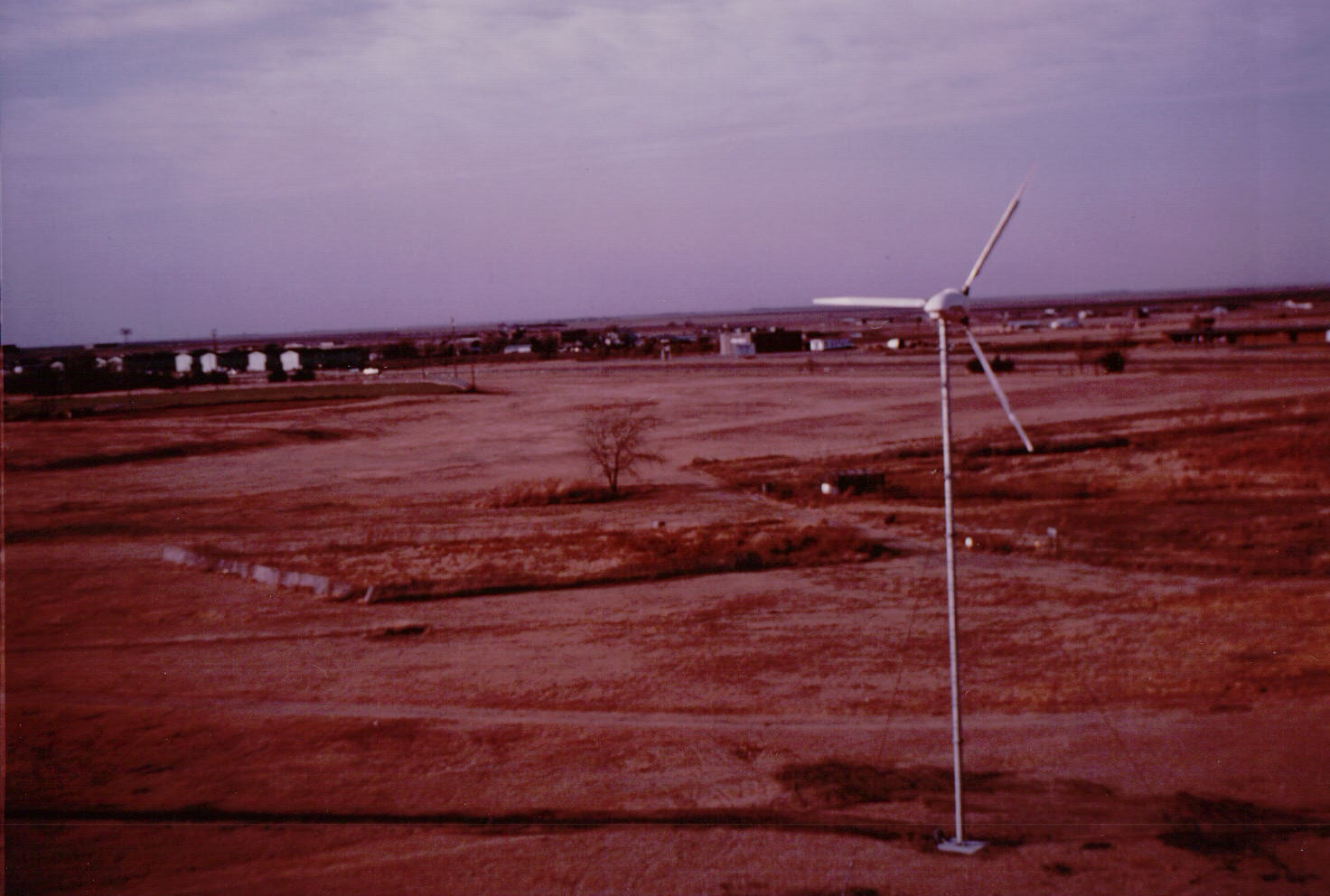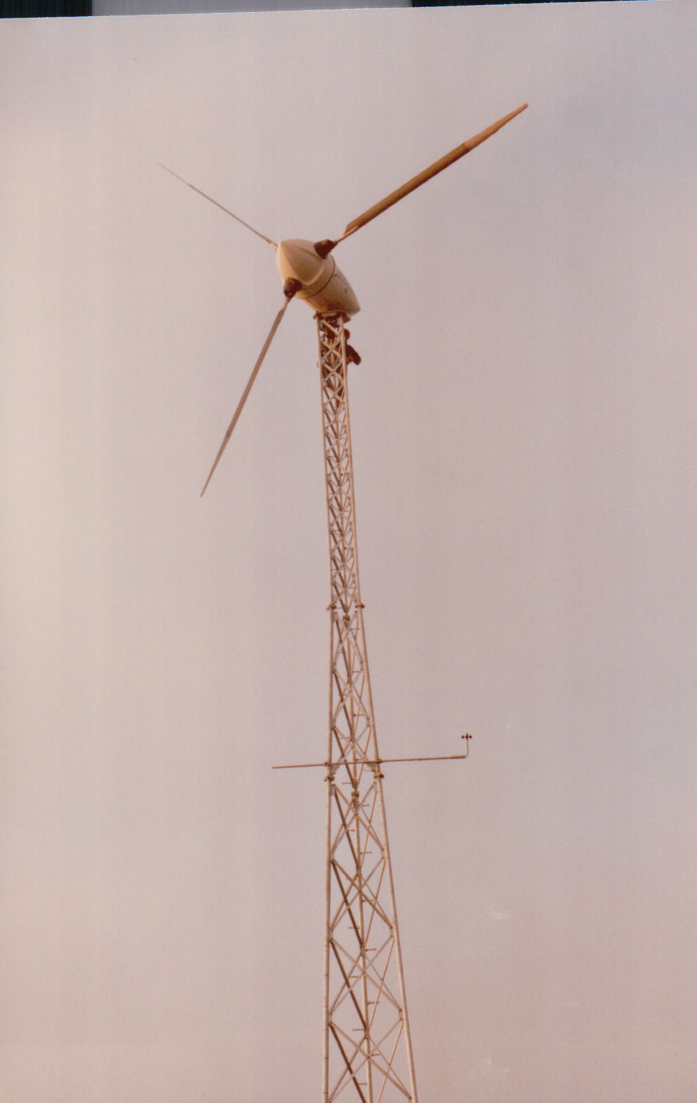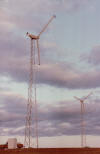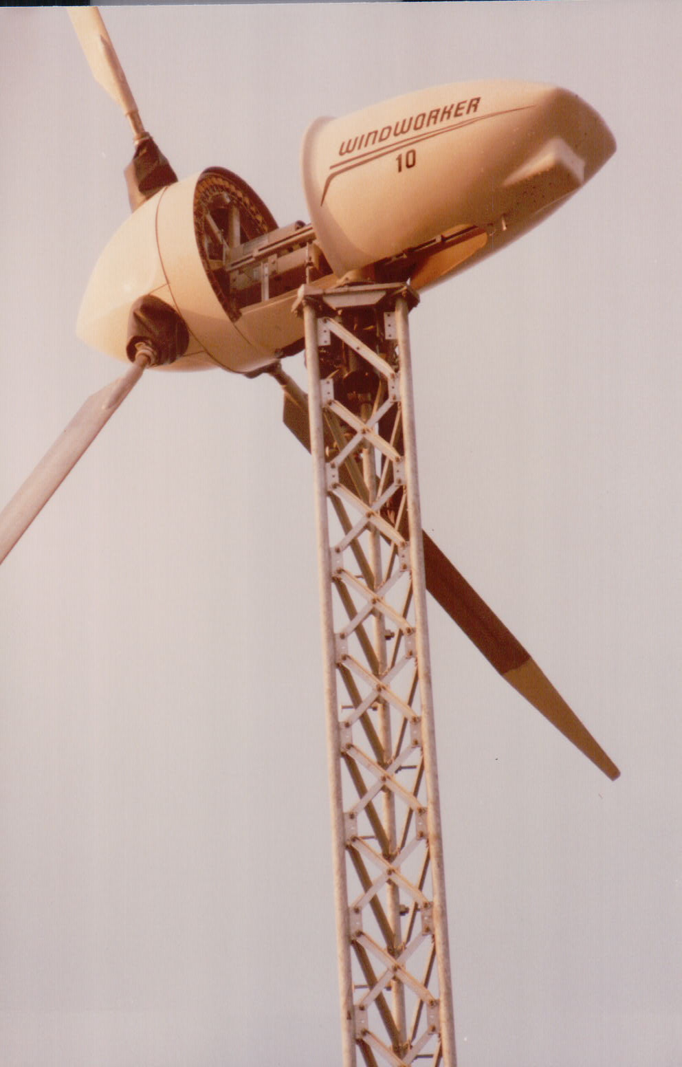 Pictures from the early 1980's of Enertech E44, WindWorker 10, WhirlWind 4000 and Winpower 32 Volt DC.