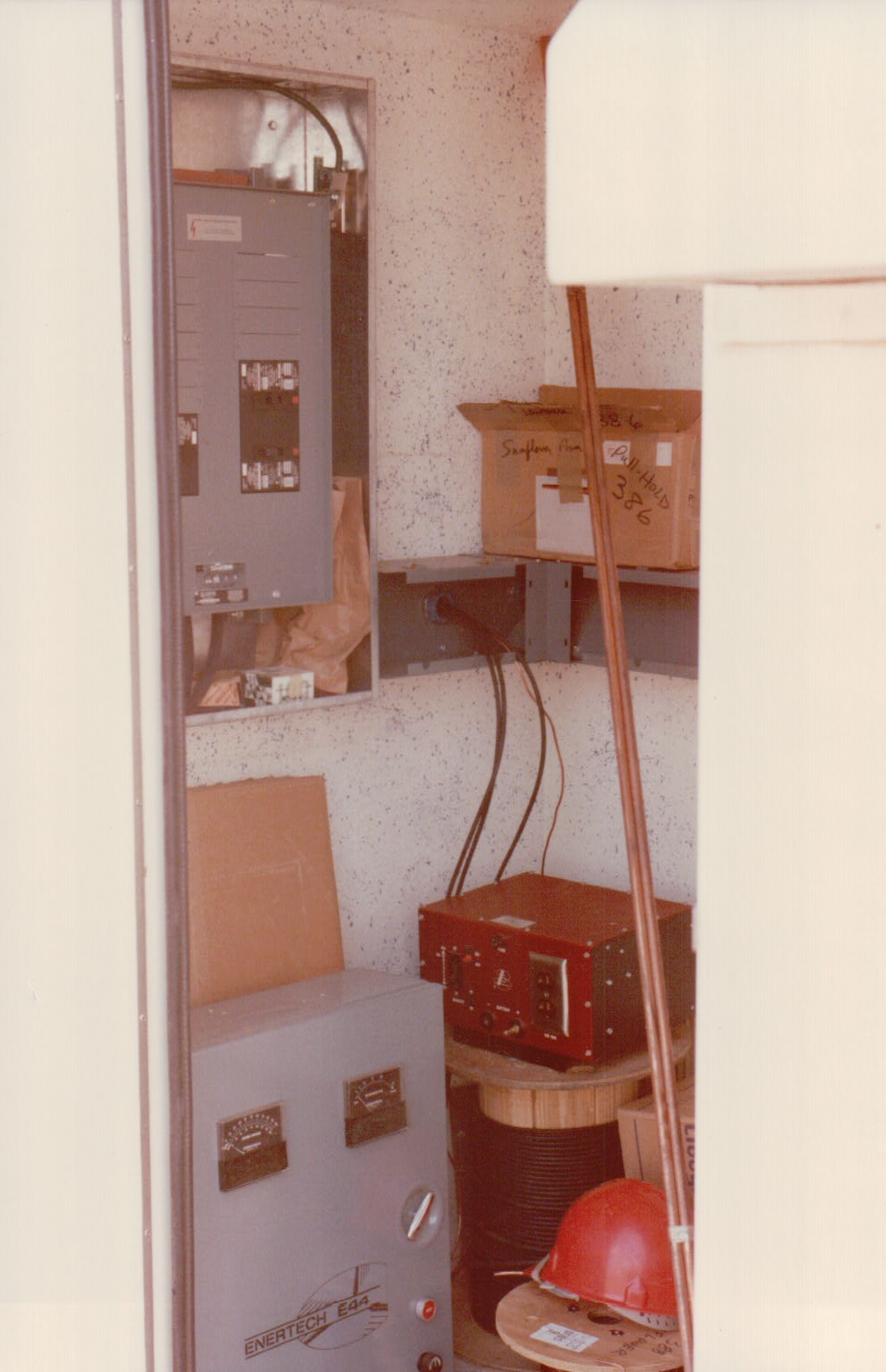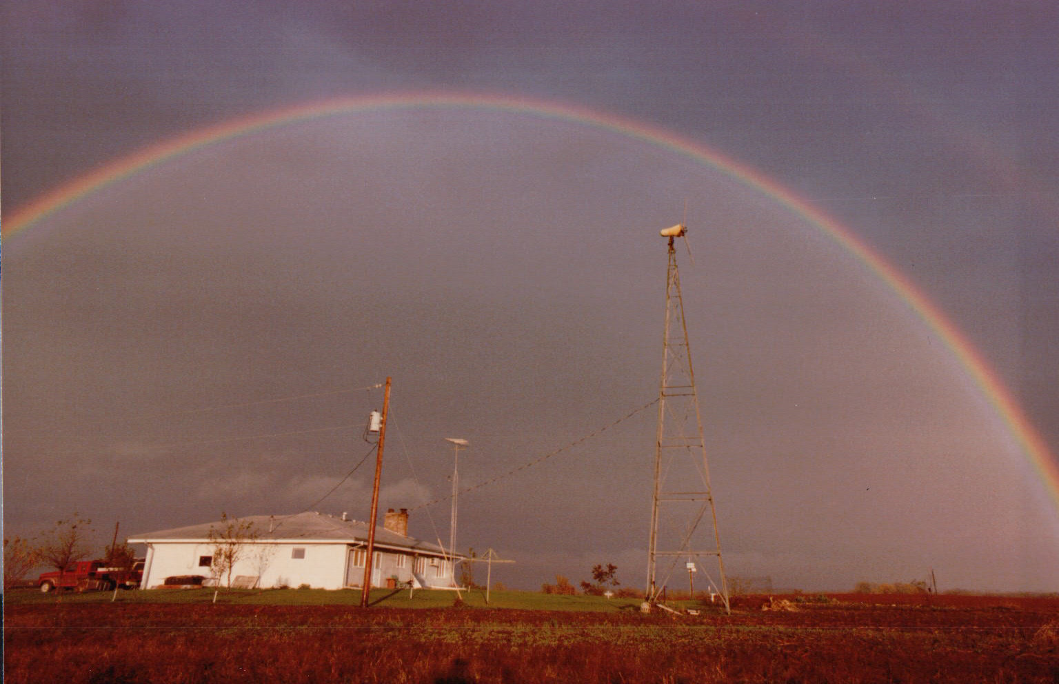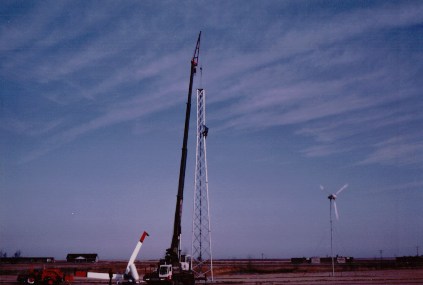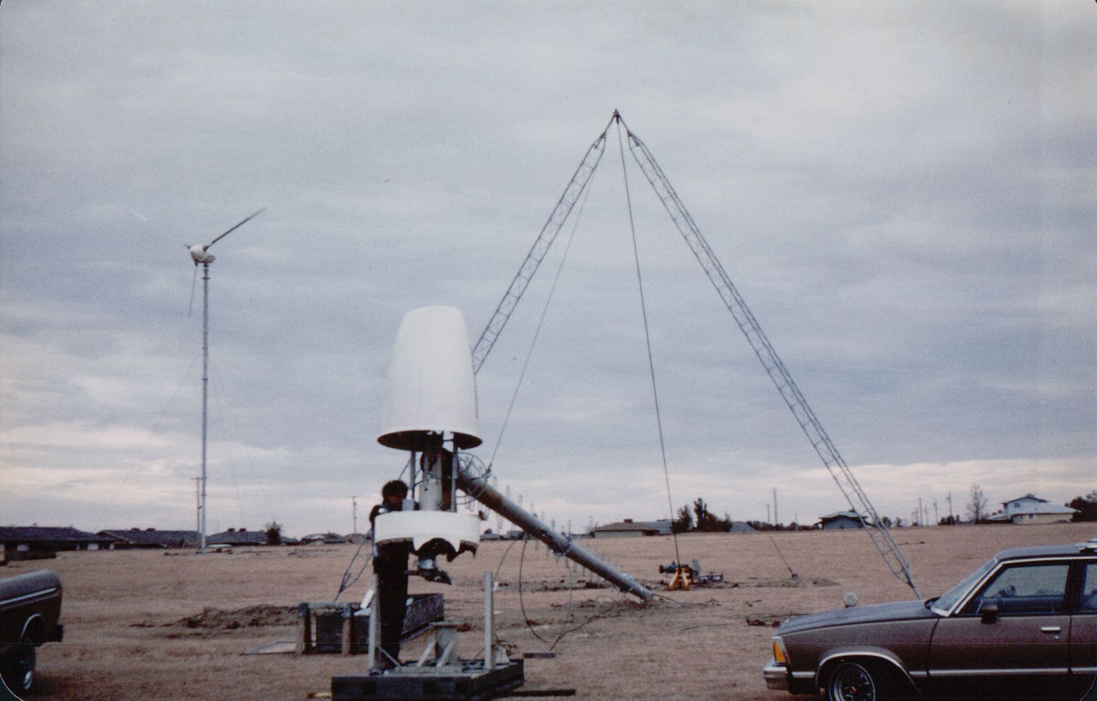 Pictures from the early 1980's of Enertech E44, WindWorker 10, WhirlWind 4000 and Winpower 32 Volt DC.
