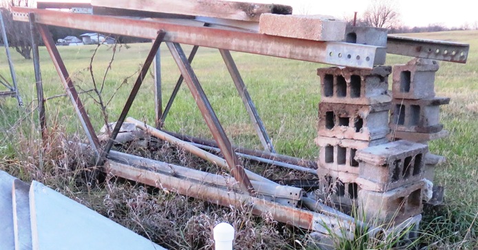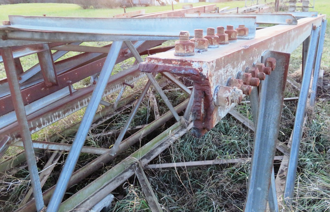 2"x2"x3/16" cross braces. Climbing bolts make a ladder on one leg of the